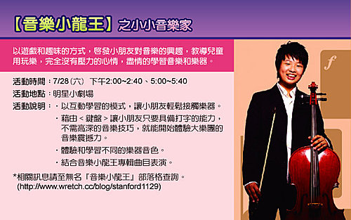 分場次時間與費用,這次音樂小龍王的活動只有在7/28 (六) 場次B